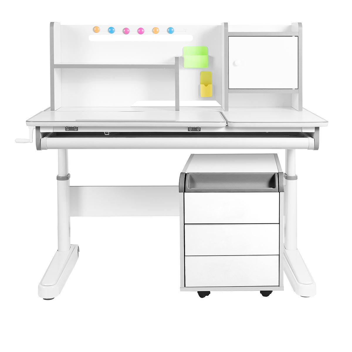 Комплект из парты Anatomica Premium Granda Plus и выкатной тумбы создан для организации комфортного рабочего места у ребенка. У парты есть выдвижной ящик, где можно разместить канцелярские аксессуары и статичная часть столешницы, куда можно поставить лампу или положить учебники, а также лотки с несколькими уровнями для бумаги или нескольких тетрадей. В тумбе можно хранить больше предметов, таких как: книжки, тетради, школьные аксессуары, а также прочие аксессуары. В каждый из выдвижных ящиком поместится много вещей.